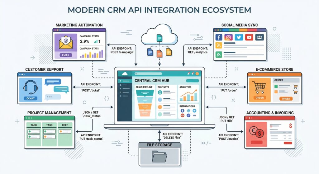 Mobile apps extend CRM beyond desktop usage. With a structured API layer, development becomes faster and more maintainable.