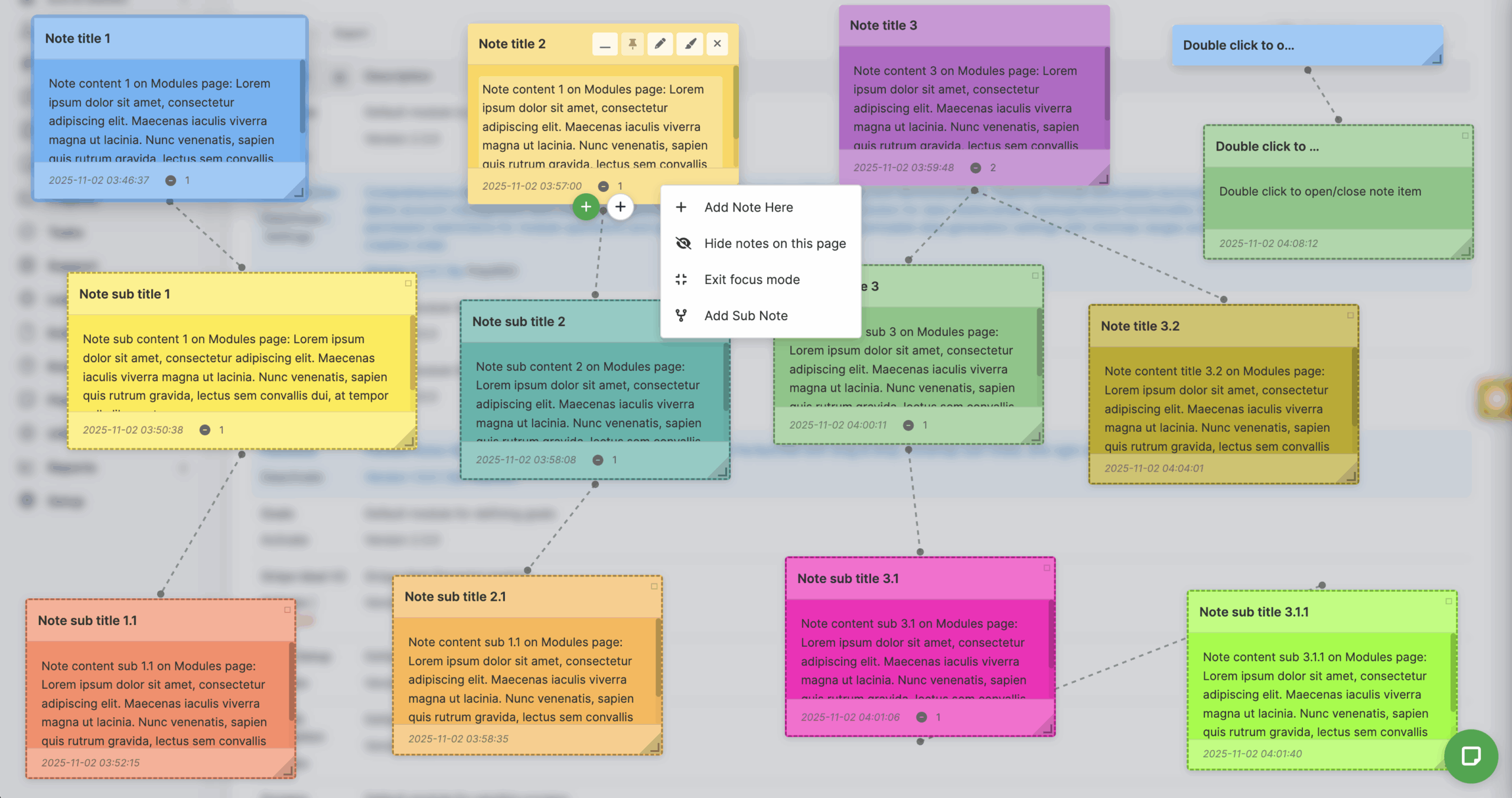 • Fill in the sub note details; FlexiNote links it visually with connection lines.